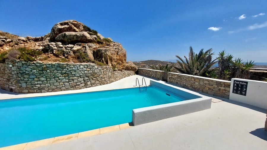 The “Chalara” area offers expansive serenity, situated just west of the picturesque Ano Mera village and north of the stunning “Agrari” beach. The property is a perfect blend of comfort, charm, and convenience, making it an ideal investment for those seeking a tranquil retreat in Mykonos.