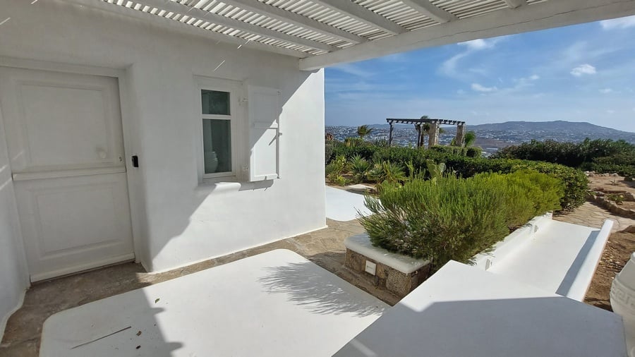 Positioned in a highly sought-after area, this architect home in Mykonos provides panoramic views of both the sea and Town. Its location ensures quick access to the vibrant village of Ornos, with its wide range of amenities and the renowned sandy beach, while “Chora”—with its cosmopolitan atmosphere, fine dining, nightlife, and cultural attractions—is only a short drive away.