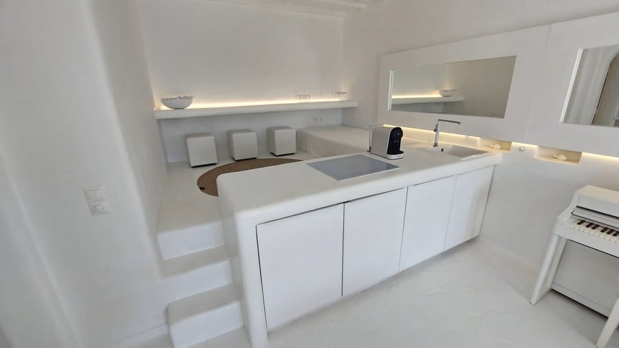 Designed with comfort and sophistication in mind, this architect home in Mykonos property blends modern living with authentic island charm.