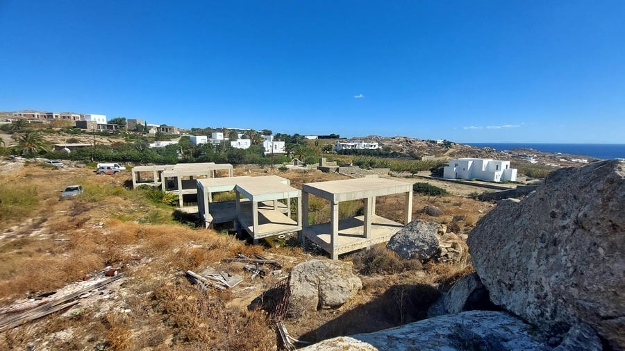 A Ready-to-Develop Investment Project on the south side of Mykonos, this property offers a practical and time-efficient entry into one of the island’s most sought-after real estate markets. With the concrete structural framework already completed and a valid building permit in place, it allows for immediate continuation toward completion — bypassing the delays of new construction permits.