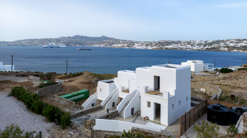 Discover an exceptional seafront property for sale set at the foot of a hillside in the Kanalia area of Mykonos. Situated just 35 meters from the sea’s blue waters, this stunning property overlooks the vibrant Town, Korfos Bay, and the new harbor, offering breathtaking views that epitomize coastal luxury.